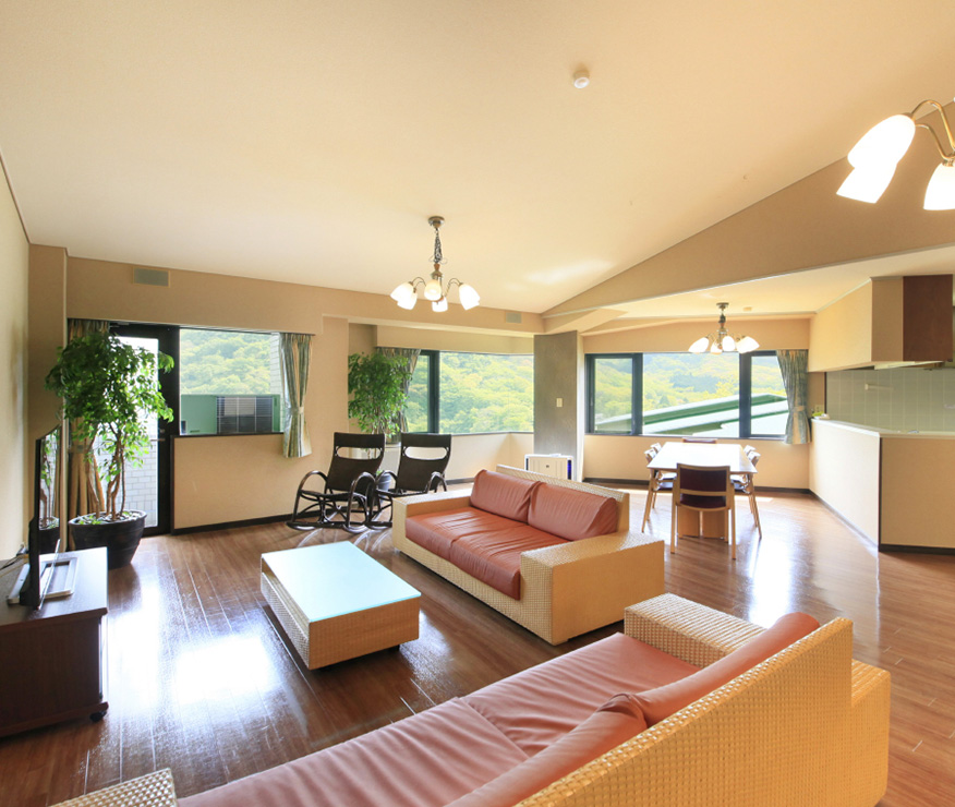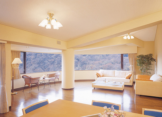 全室パノラマビュー、平均120平米のグランドスイート。四季折々に変化する、山並みの表情をお楽しみいただける施設です。