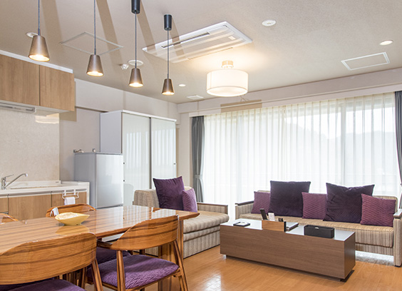 お部屋はリビング、キッチンを有するコンドミニアムタイプ。