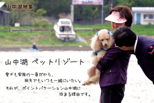 ダラスヴィレッジを後にして、砂浜の広がる湖畔へ。あいにく天候は下り坂で空はくすんで いたが、それでも風は初夏のさわやかさを運んでくる。レオ君は嬉しそうに、砂の上をマリのように飛び跳ねて気のおもむくままに遊んでいた。それでも時々不 安気にご夫妻の様子をうかがう。近くにいてね、とおねだりするような表情が愛らしい。 愛犬は、ストレスを解消できて、私たちはそれによって癒される。 どちらにとっても良いことづくめです。 「私たちが住んでいる町田は、まだ緑が残っている方だと思います。でも、やはり山中湖に来ると自然の大きさが違う。レオのはしゃぎようを見ていると、それが実感できます。」 日頃お仕事で忙しいご夫妻は、レオ君と向き合う時間が減ってきていることを残念に思ってきたとおっしゃる。 「だからポイントバケーションに来るんです。いつも3~4泊して、その間はレオとずっと一緒。そして、できるだけ目いっぱい遊ばせる。イヌのストレス解消ですね。で、私たちも癒されているんですね。」 ポイントバケーション山中湖には、「ドッグフォレスト」という森の中のドッグランといった趣の設備がある。ここでもレオ君は木々の間をご夫妻と隠れんぼをするように、走り回っていた。 愛犬仲間と一緒にワイワイと泊まるのもきっと楽しいでしょう。 いろいろなカタチで、もっと頻繁に利用したいですね。